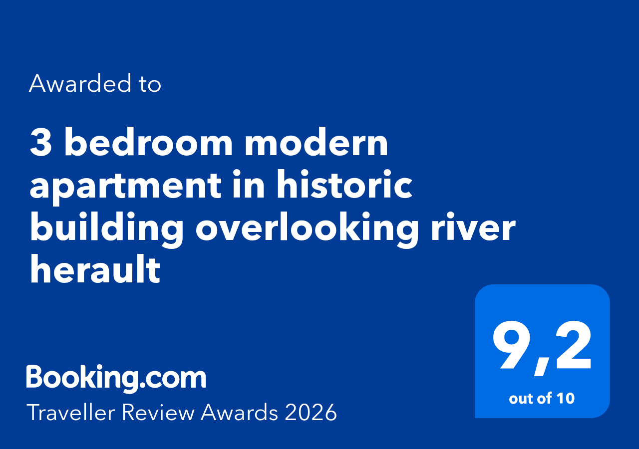 We have a spacious 3 bedroom, loft style apartment for rent in historic Agde on the banks of the River Herault, only 5 minutes drive from the stunning beaches of the mediterranean. The characterful building dates back to 1620 and is constructed from Volcanic rock from nearby Mont St Loup, our apartment was originally occupied by the Bishop of Agde. It has 3 large bedrooms, a massive open plan lounge, dining area and kitchen and will comfortably sleep up to 6 people.